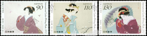 国际文通周,浮世绘《初东风》、《春芳》及《吹雪》3全