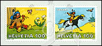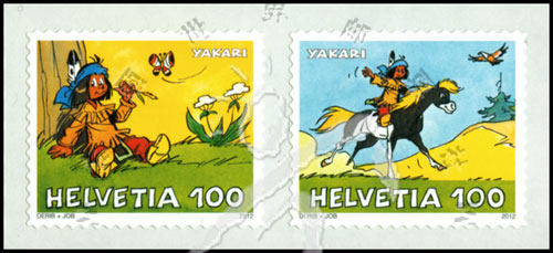 动画片《雅加利》,印度小男孩雅加利玩耍及骑马不干胶贴票2联