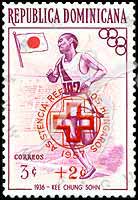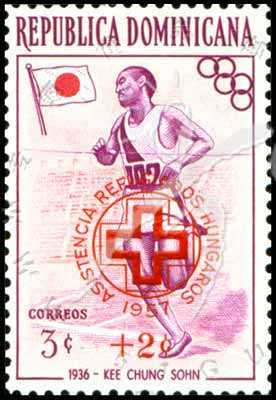 Sc#B3 1936年奥运男子马拉松冠军日本孙基祯附捐票3c+2c (8-3) 1枚