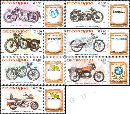 摩托车百年,比利时1928年F·N、1928年道格拉斯、1938年普赫、1939年漫游者、1949年本田、1984年宝马及1984年本田摩托车带标志边纸7全