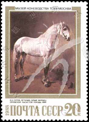Sc#5697 养马业绘画《灰色奥卡洛夫走马》谢罗夫绘20k (5-4) 1枚