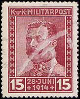 Sc#B14 奥匈帝国王储夫妇逝世3周年,王储费迪南15h (3-2) 1枚
