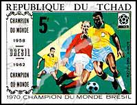 Sc#227D 墨西哥世界杯,巴西球员与国旗无齿票5f 1枚