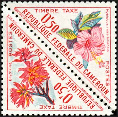 Sc#J34-35 花卉芙蓉等三角形欠资票50c (2联) 1枚