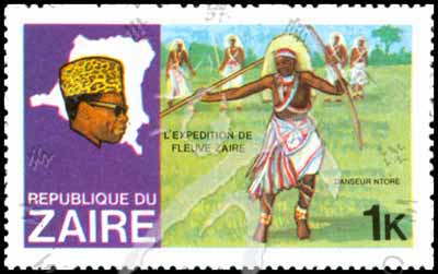 Sc#902 蒙博托总统和地图、舞蹈者1k (9-1) 1枚