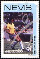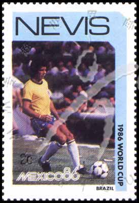 Sc#478 (SG#390) 墨西哥世界杯赛,巴西足球队员2c (12-2) 1枚