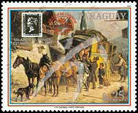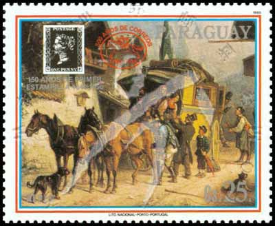Sc#C817 邮政马车500年,黑便士票中票和马车航空票25g (5-4) 1枚