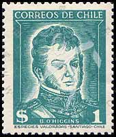 Sc#265 智利独立战争领袖—奥希金斯将军普票1p 1枚