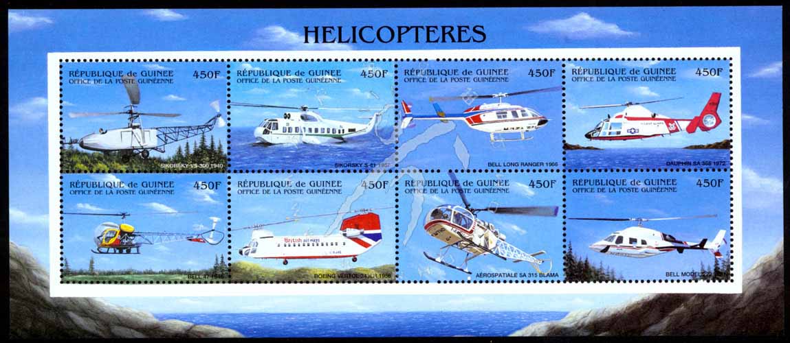 直升飞机,贝尔47等老式直升飞机小版张(8票)(我社已售缺)