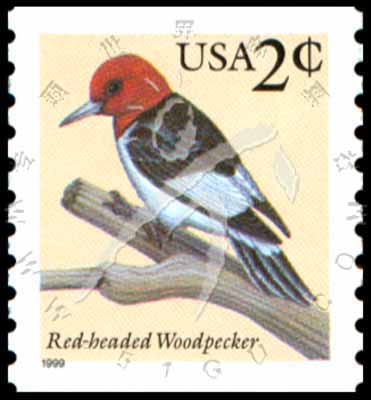 Sc#3045 鸟类:红头啄木鸟卷筒普票2c 1枚