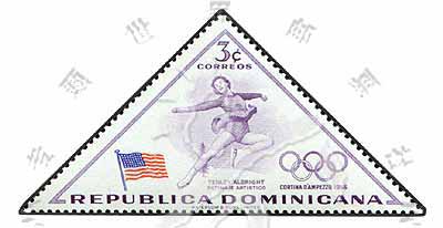 邮票介绍:Sc#486 奥运女子花样滑冰冠军美国特·阿尔伯兰特三角票3c (8-3) 1枚