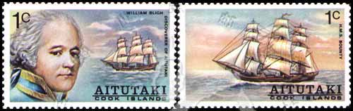 Sc#97a 布莱船长发现艾图塔基185年,船长与帆船1c (2联) 1枚