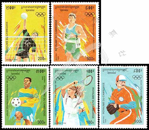 Sc#1478-81 亚特兰大奥运,网球、排球、足球、赛跑、棒球(5枚) 1枚(1478、1479、1480、1480A、1481)