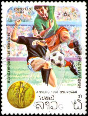 Sc#526 洛杉矶奥运,足球及比利时1920年金牌6k (7-6) 1枚