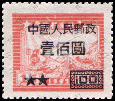 Sc#78 邮差与火车加盖改值$100 (5-2) 1枚