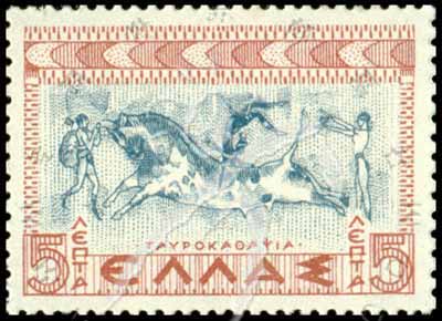 Sc#396 前2000-1400年克里特岛玩牛杂技图普票5l 1枚