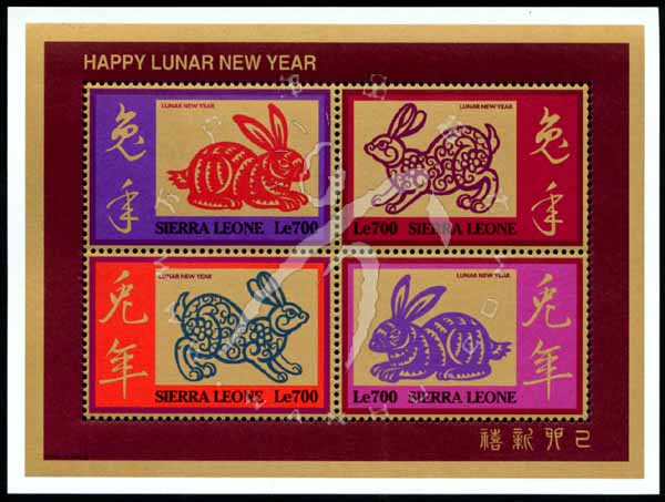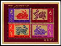 兔年生肖,剪纸兔及中文书法小全张(4票)