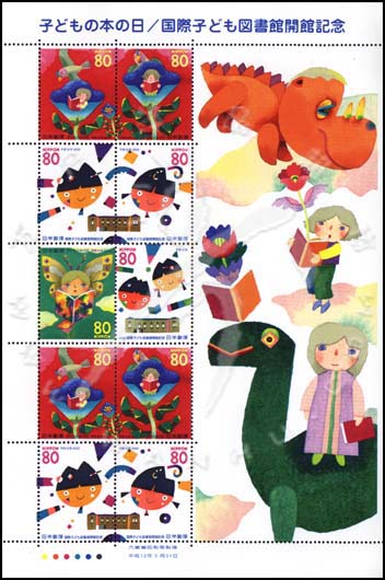 儿童图书日—国际儿童图书馆开馆纪念,读书的蝴蝶小仙子及孩童等小版张(10票)(我社已售缺)