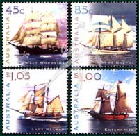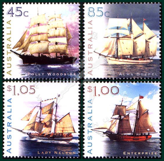 澳大利亚世界邮展—古帆船,“波利·伍德赛德”号、阿尔玛·多尔波尔号、企业号及纳尔森夫人号帆船4全