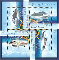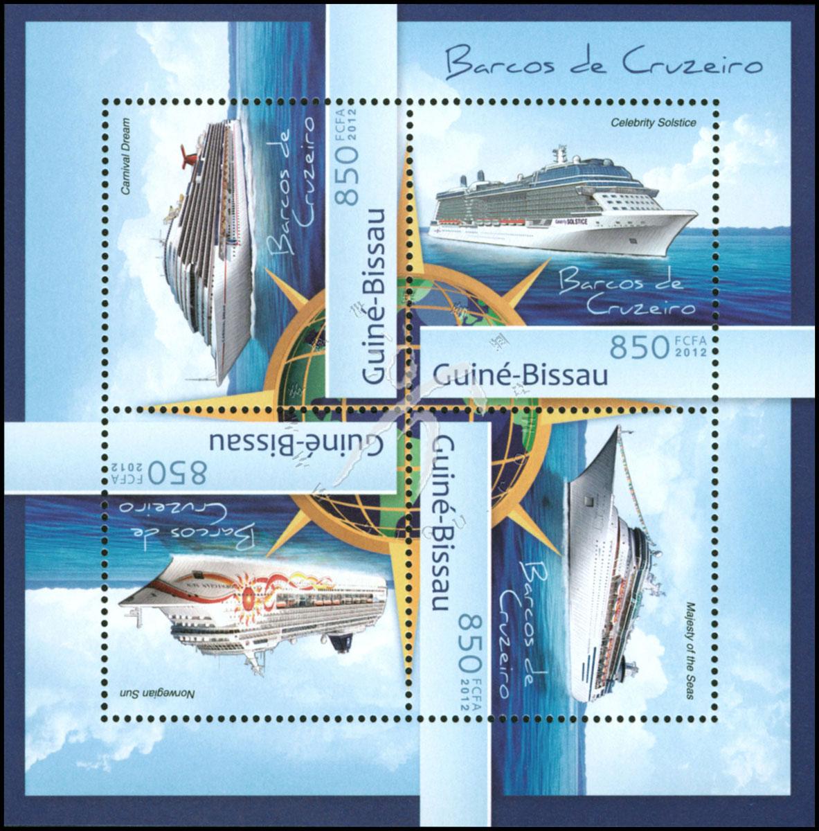 大型邮轮,海洋帝王号邮轮、挪威太阳号邮轮、极致号邮轮及嘉年华梦想号邮轮小全张(4票)