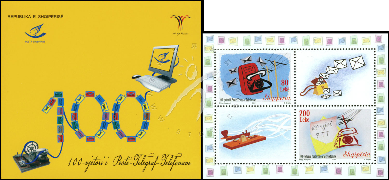 阿尔巴尼亚邮政电信业百年,电话、信件及发报机等小本票(2票+2枚附票)