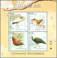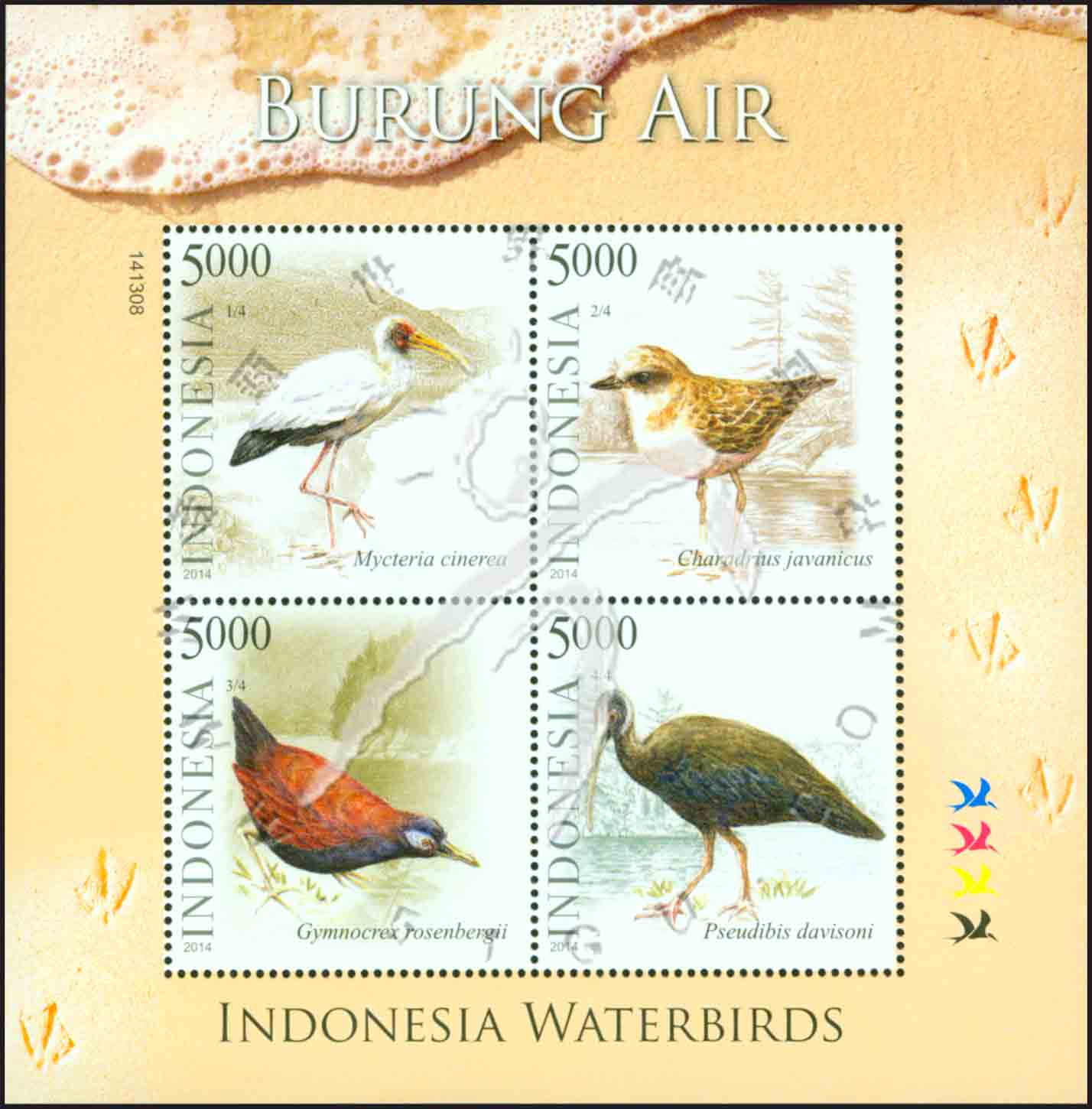 鸟类,灰鹮鹳、爪哇鸻、裸脸秧鸡及白肩黑鹮小全张(4票)