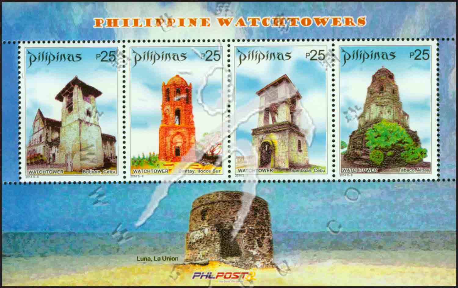 瞭望塔,波尔朱恩岛、班塔延岛及吕宋岛上的瞭望塔涂层票小全张(4票)