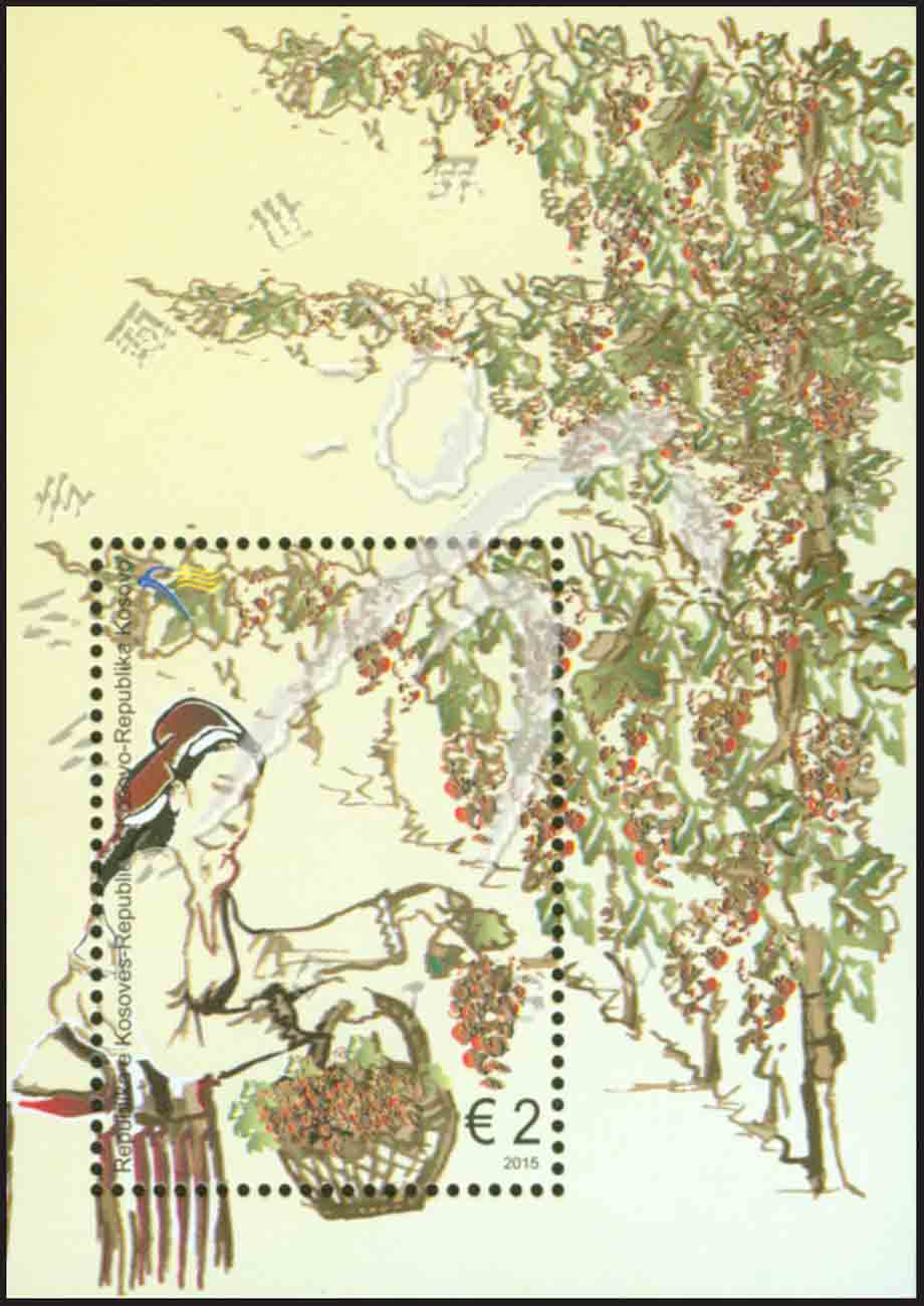 科索沃葡萄园,绘画采摘葡萄小型张