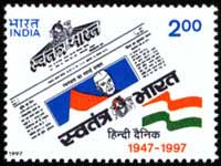 《自由印度》报纸(印地文日报,在勒克瑙出版,发行量为9万余份)发行50周年,报纸1全