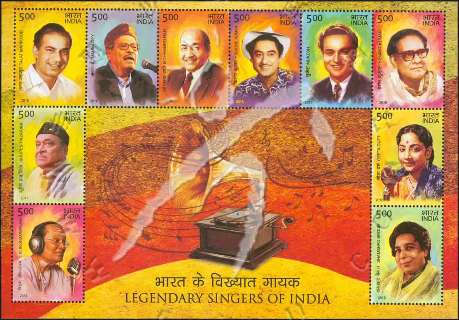 印度传奇歌手,萨姆萨德、吉塔·杜特、默罕默德·拉斐、穆克什、马那、纪梭·库玛、唱片机及音符小全张(10票)