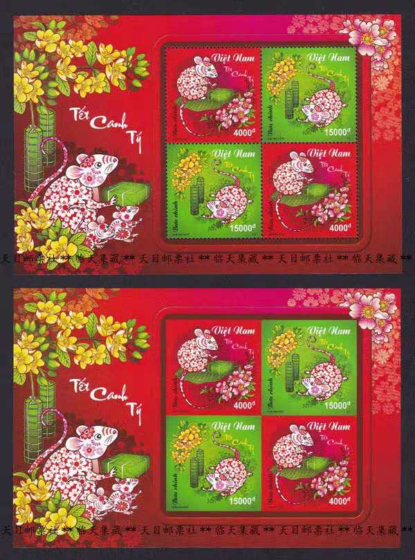 越南2020年生肖鼠小版张有齿、无齿各1套,
