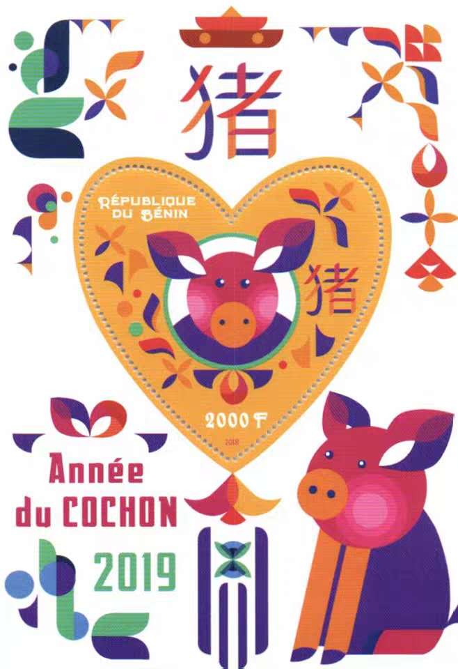 贝宁2019生肖猪邮票小型张