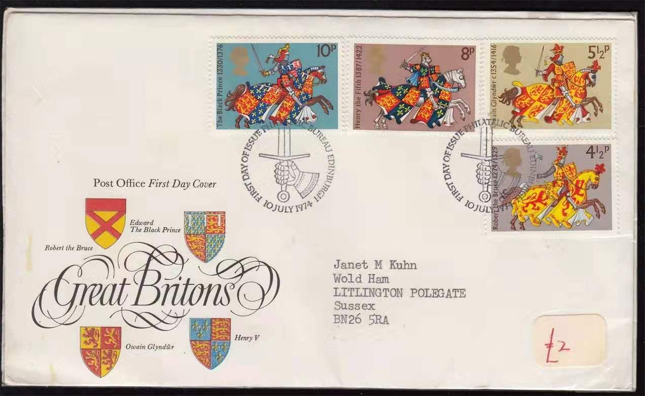 英国1974年戏剧历史人物—国王和王子等(4票全)首日实寄封