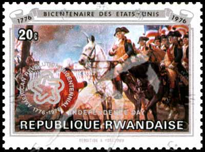 Sc#754 美国独立200周年,英军在约克镇投降绘画加盖20c (8-1) 1枚