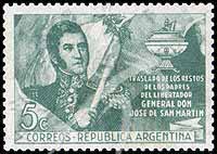 Sc#569 圣马丁将军双亲骨灰坛运归阿根廷,圣马丁将军5c 1枚