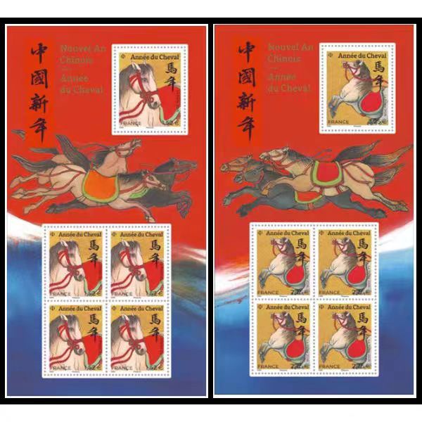 法国2026年生肖马邮票小版张2全含10票有汉字“中国新年”