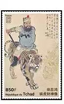 乍得2022年非洲6国联合发行中国书画名家徐悲鸿《骑虎财神像》邮票1全