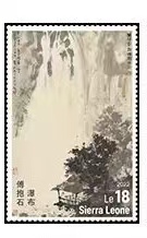 塞拉利昂2022年非洲6国联合发行中国书画名家傅抱石《瀑布》邮票1全